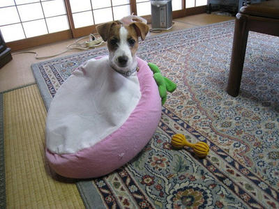 さて買い物を終えて帰ってみるとチー太郎がお出迎え。