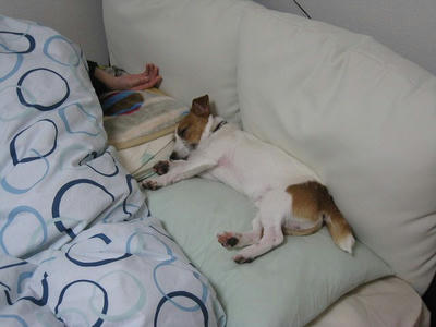目覚ましとめて2度寝を開始すると顔ペロペロ攻撃して起こそうとする・・・ここは根気の勝負。これを起きるまで繰り返すw