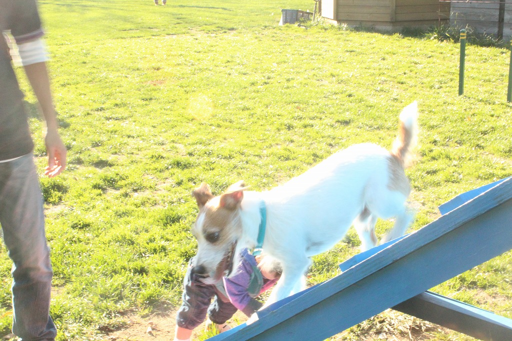 アジリティがあったので、おもちゃを餌にチーを登らせまくりで疲れさせることに専念w