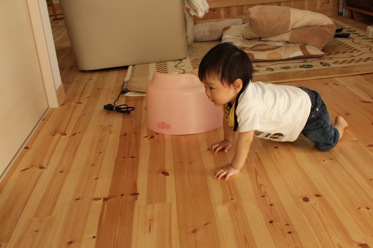 足元までハイハイしてきて足にしがみついて抱っこ要求してくるわけです(・ω・)